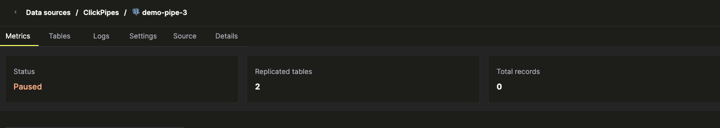 - Примерно через 5 секунд (а также после обновления страницы) статус ClickPipe должен измениться на Paused.